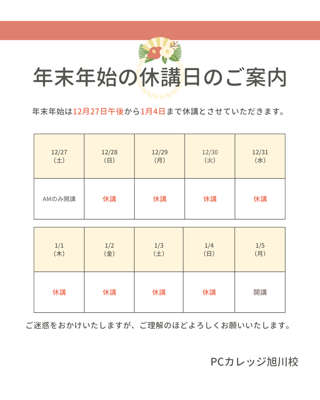 今年も株式会社アイラ PCカレッジ旭川校をよろしくお願い致します。