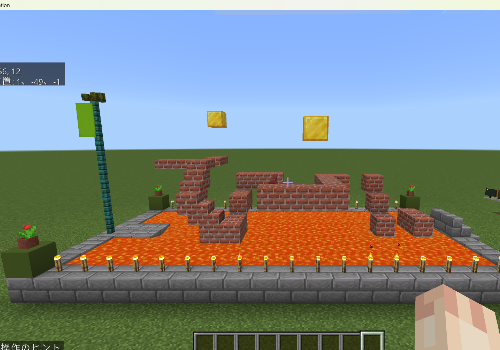 某有名アクションゲーム風のアスレチックを作ったよ。マグマに落ちないように気を付けてゴールの旗までたどりつけるかな!?