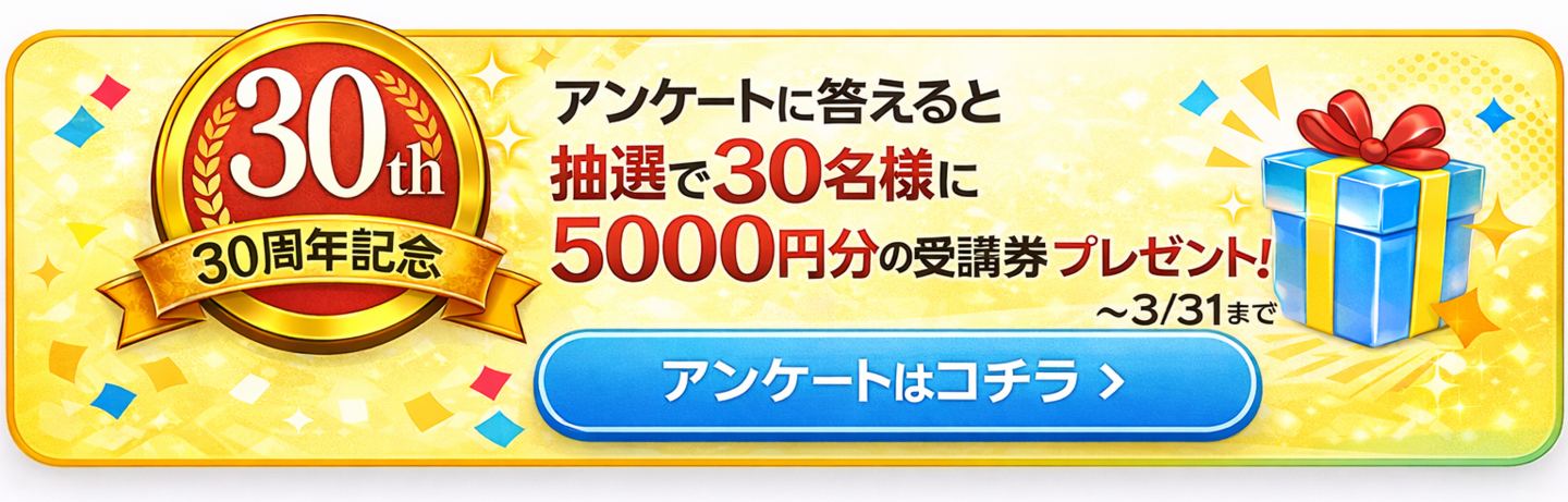 ※PCカレッジ受講券5000円分はほかのキャンペーンとの併用は不可になります。(MOS・小学生プログラミング5000円ぽっきりキャンペーンは不可)