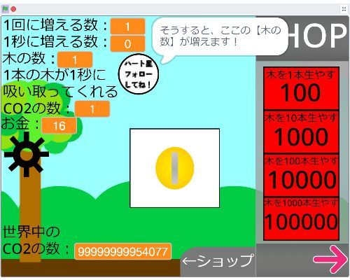 人気のクリッカー系ゲームが、環境問題を取り入れて再現できています。展示コーナーでは子供たちに大人気でした!