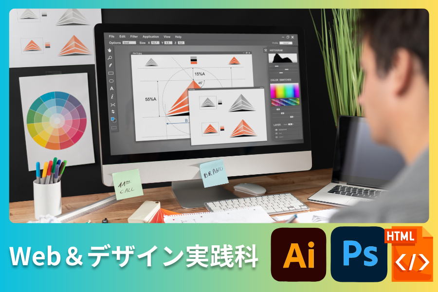 web制作業務や画像・写真、PCを活用した職種につくため、PCを普段利用しているだけでは身につかない基礎知識や技術、Web・グラフィックに関する技術を習得します。