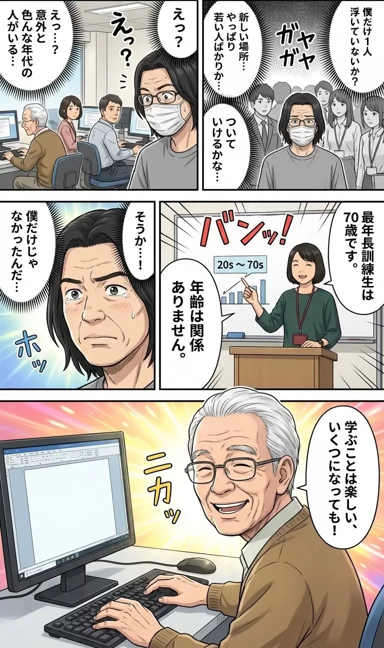 就職・再就職を目指す方はもちろん、スキルアップしたい方であれば年齢に関係なくご受講いただけます。