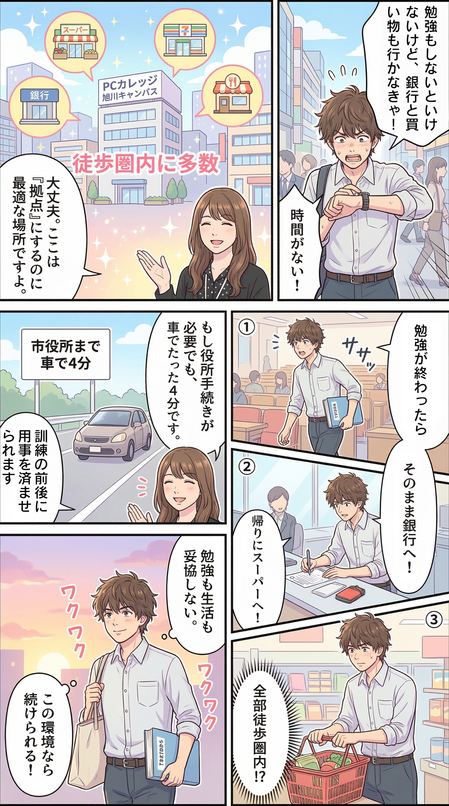 1日4時間の短時間授業なので、育児や介護と両立しながら通学できます。役所の手続きやアルバイトなどにも時間を充てられ、安心して学べます。