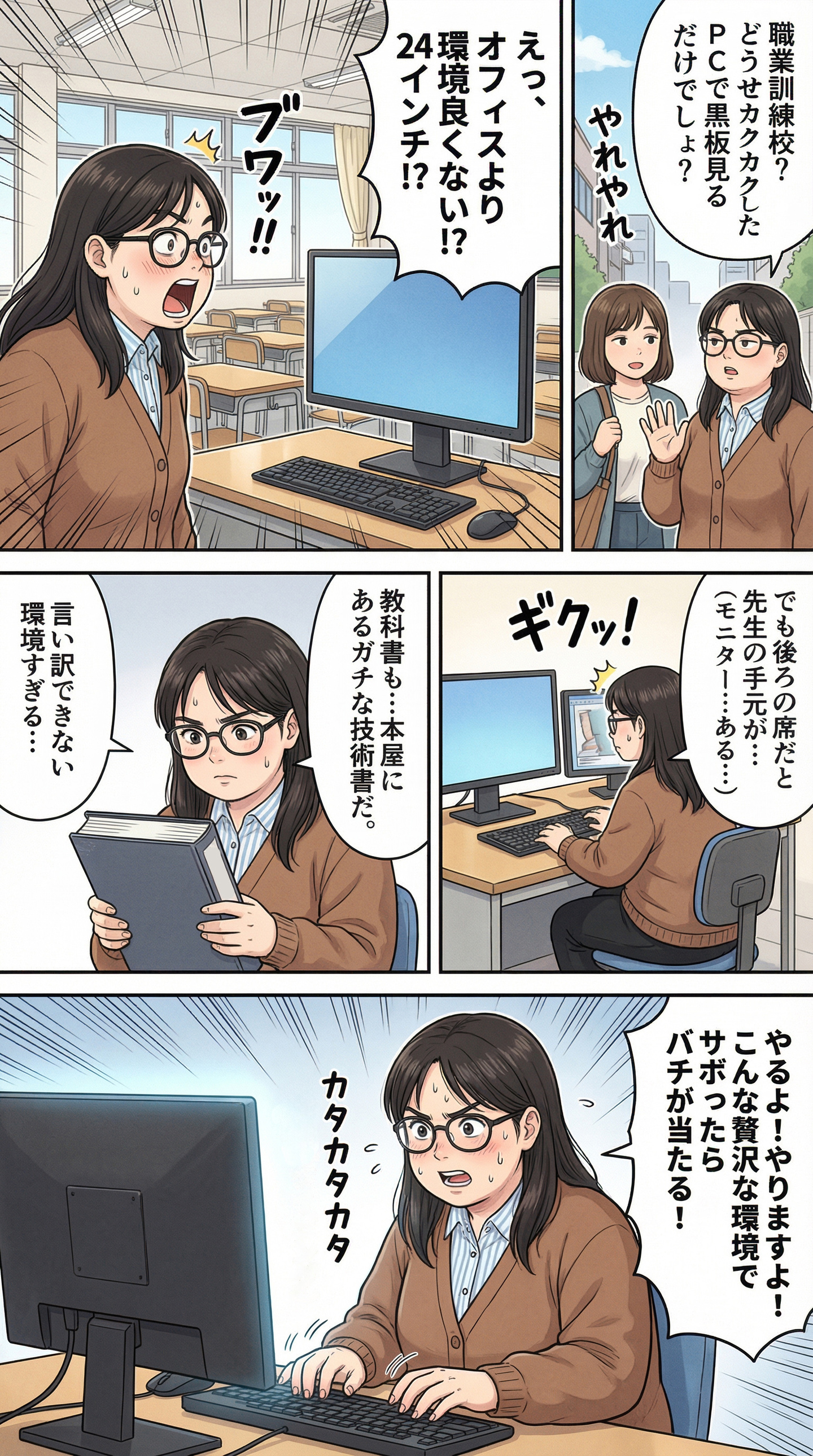 入学当初は電源の入れ方さえも怪しく、USBメモリ?ホルダーに保存?エクセルとは?ワードとは?といったありさまで、全くの無知のままからのスタートとなりました。